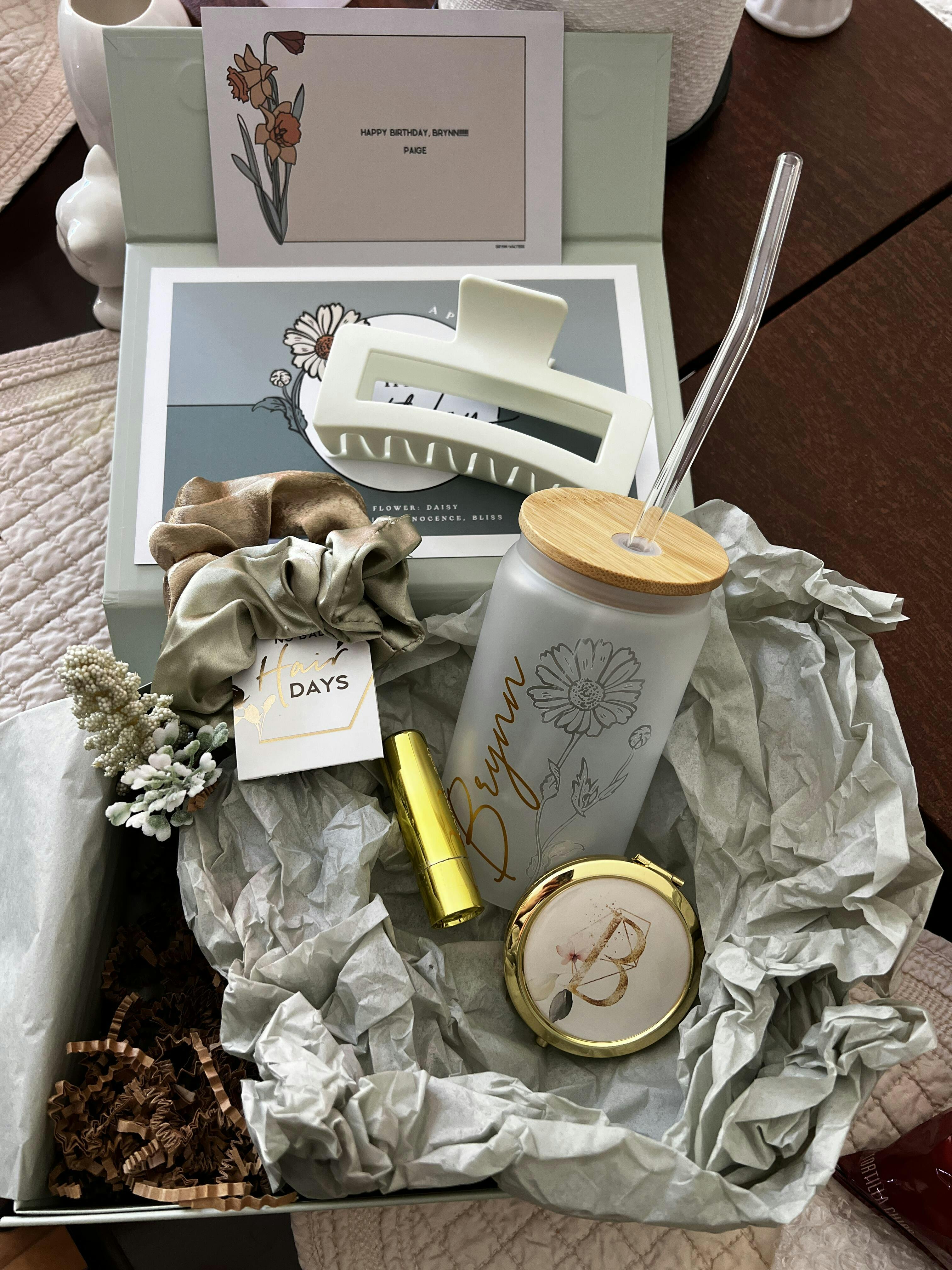 I received this personalized box of goodies for my birthday from my sister in law and loved it! So when her birthday came along I decided it would be the perfect gift to send her. First off, the personalized box was so nice. As a person with a unique name, this was such an exciting surprise. The items inside were all so beautiful, and I loved having different boxes to choose from. The price was more than fair for all of the items, and the packaging was secure and so pretty.